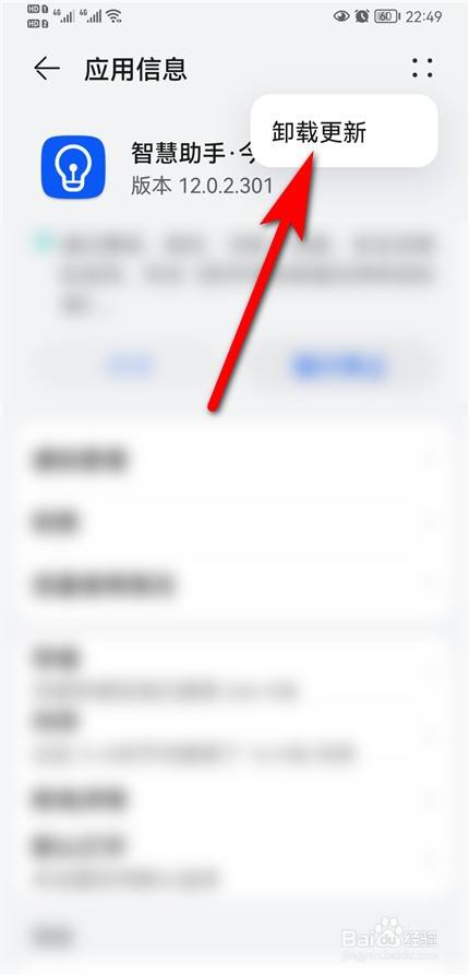 进入应用和服务页面,点击应用管理。搜索并点及智慧助手。点击右上角的四点,再点击卸载更新页面。弹出提示,点击卸载更新即可。