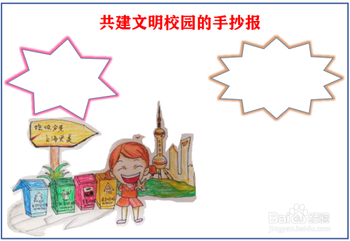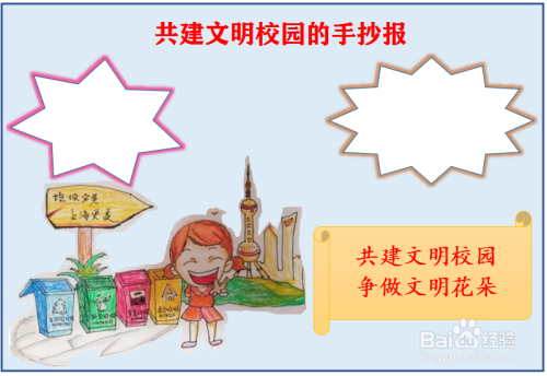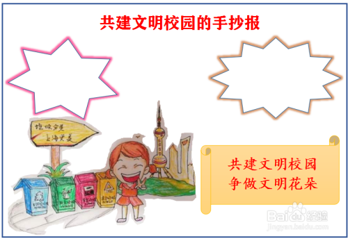 在右侧的空白处画一个线框,写上共建文明校园宣传标语