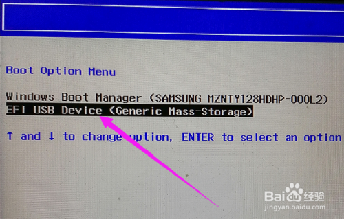 在打开的屏幕中,选中【EFI USB Device (Generic Mass-Storage)】选项,敲击【回车键】进入“Win03pe”系统。