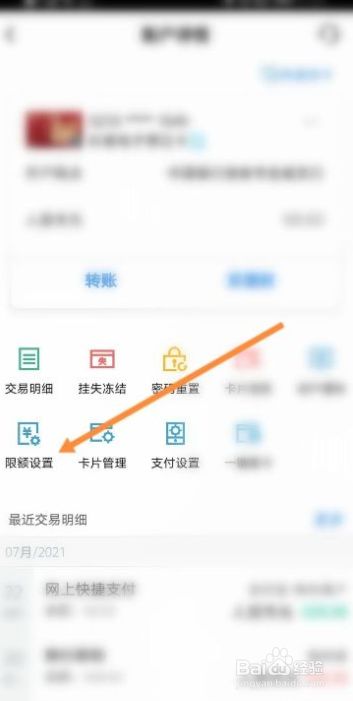 点击限额设置选项。