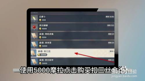 在游戏界面中,前往万民堂,与npc对话点击选择我想打包带走选项,使用5000摩拉点击购买扣三丝食谱,前往灶台点击烹饪就可获得原神扣三丝食谱,具体步骤如下 。