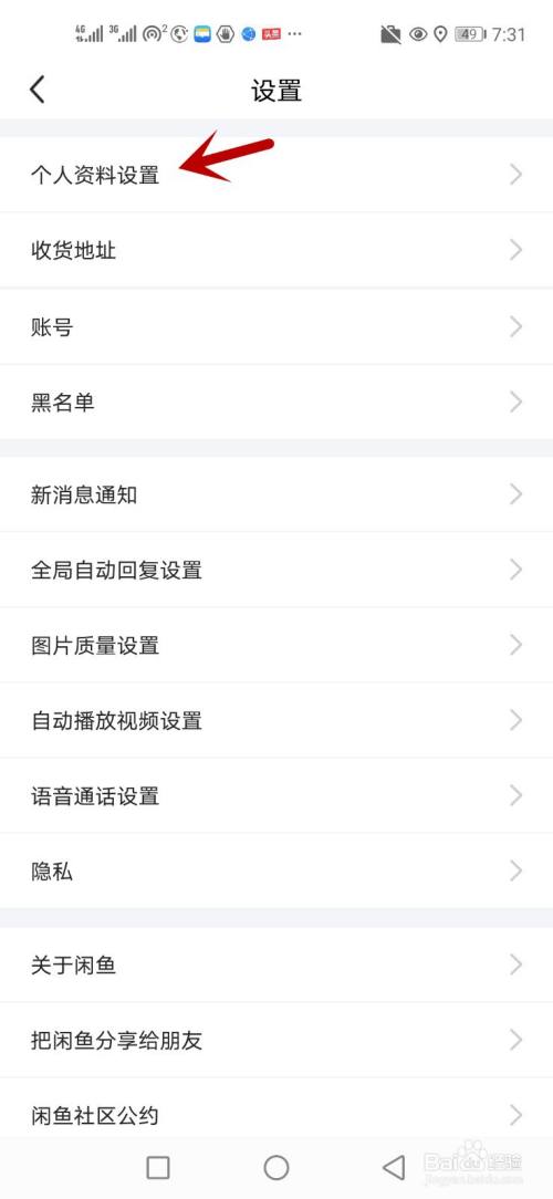 点击个人资料设置