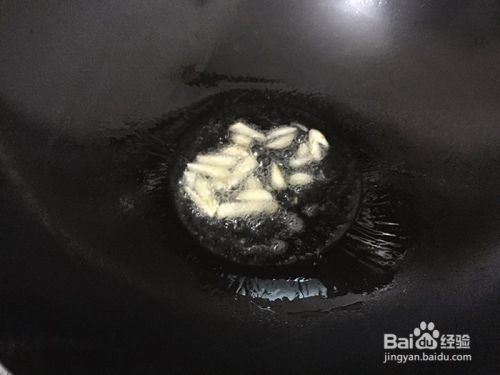 热锅下油,放入大蒜爆香,接着放入口蘑翻炒。