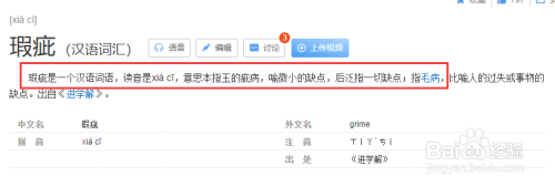可以看到成语的意思本指玉的疵病,喻微小的缺点,后泛指一切缺点,指毛病,比喻人的过失或事物的缺点。