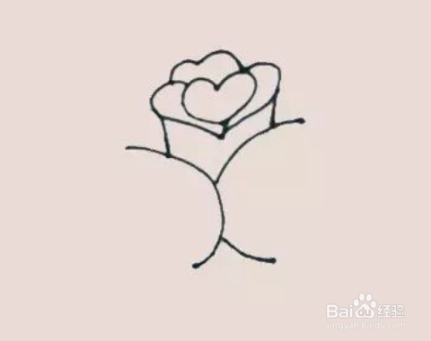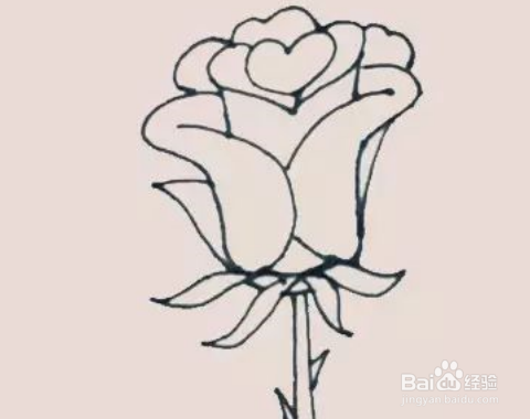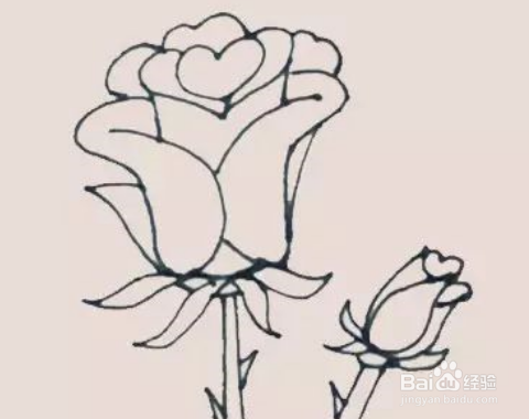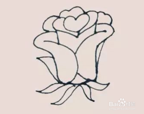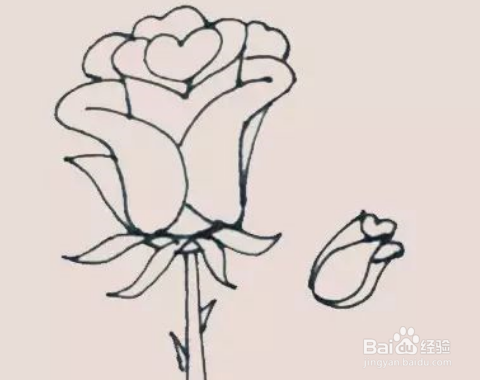 在玫瑰花旁边再画上一朵没盛开的玫瑰,也是先画上一个小爱心,然后用弧线和曲线包裹起来。
