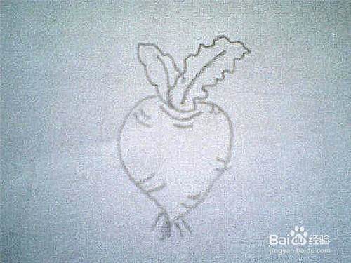 再把大萝卜的外形线自然流畅地画出来,