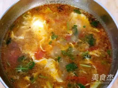 14撒入香菜,根据个人口味加入适量的盐,鸡精和香油就好了