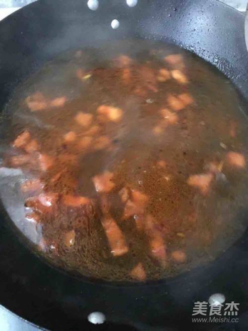 7加入两碗水,转小火煮,两个人的量
