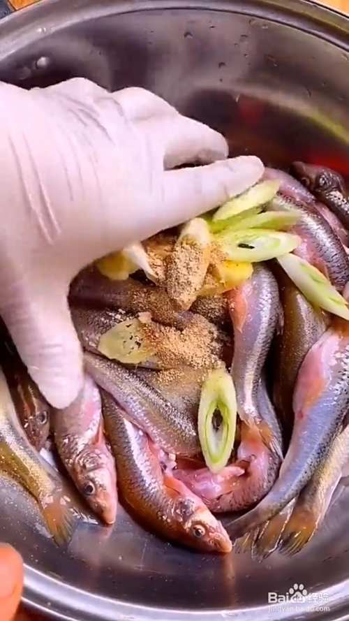 首先,把买来的小鱼洗净控干水分,再加入葱姜和去腥的料酒,一小勺盐,十三香和胡椒粉,抓拌均匀。