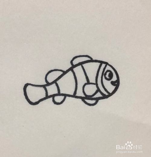 然后把小丑鱼的眼睛和嘴巴画出来;