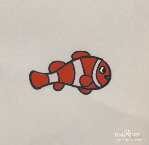 最后涂上颜色,一条简单又可爱的小丑鱼就画好了。