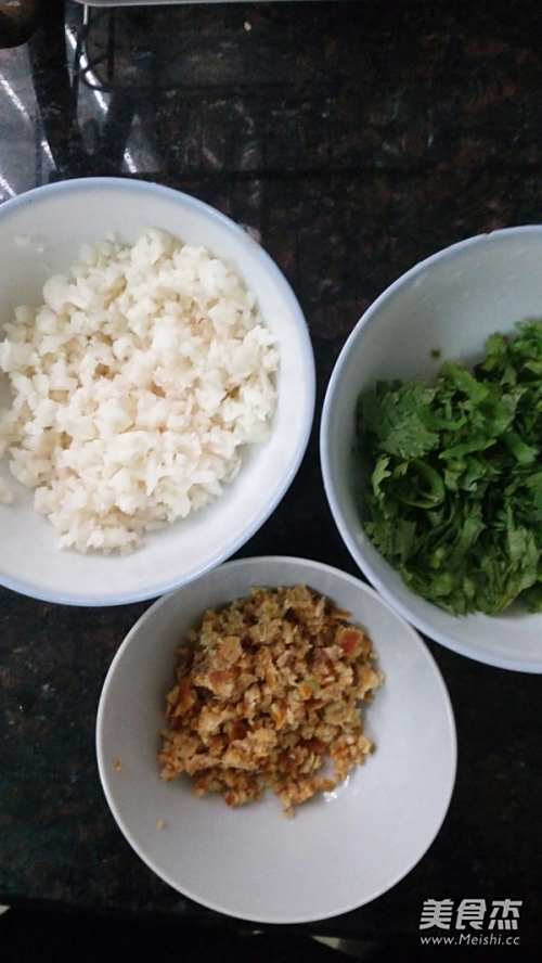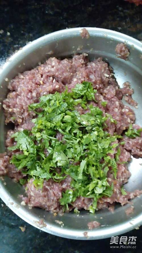 马蹄剁碎,陈皮泡软剁碎,香菜切末
