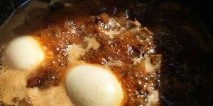 生板栗在背部划一刀,将板栗和鸡蛋一同放进锅里用水煮开后再煮5分钟,然后捞出后稍稍冷却再剥壳