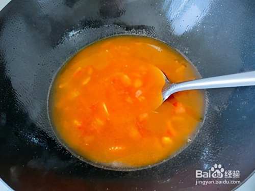 炒番茄丁:起锅烧热少许油,爆香姜蒜片,下入番茄丁,炒至融化出汁,加1勺番茄酱,可以使番茄味浓香一点。