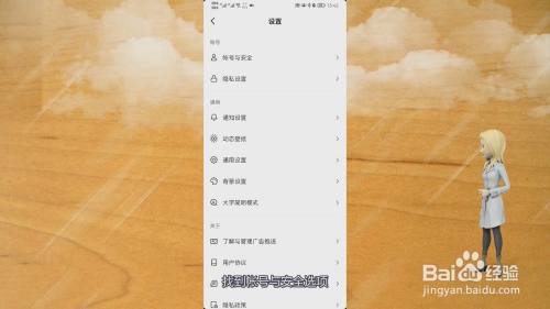 在抖音的设置界面里,找到帐号与安全选项,点击它。