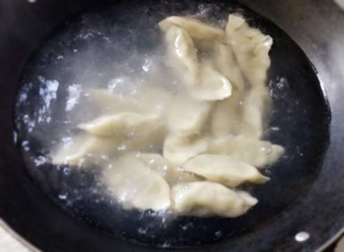 6饺子包好后,放入沸水中煮熟捞出。因为馅料中的菇已炒熟,所以主要把饺子皮煮熟就可以捞出。蘸点酱油更美味哦~