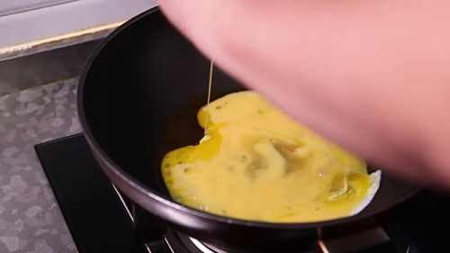 锅中放入油,油热后倒入鸡蛋。