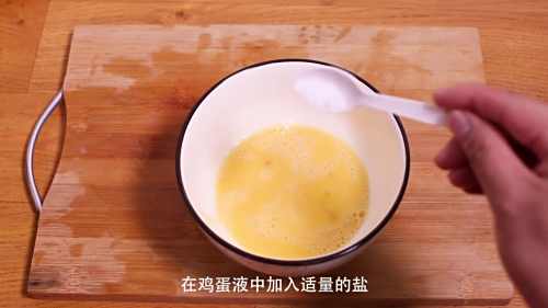 在鸡蛋液中加入盐搅拌均匀。