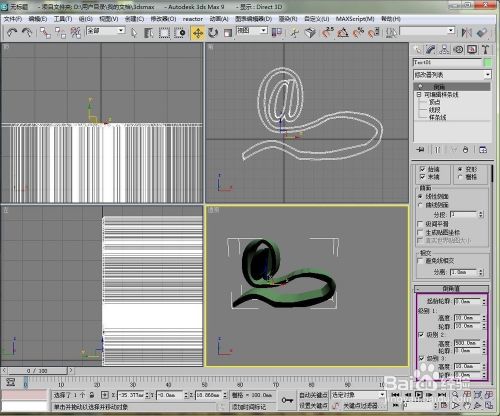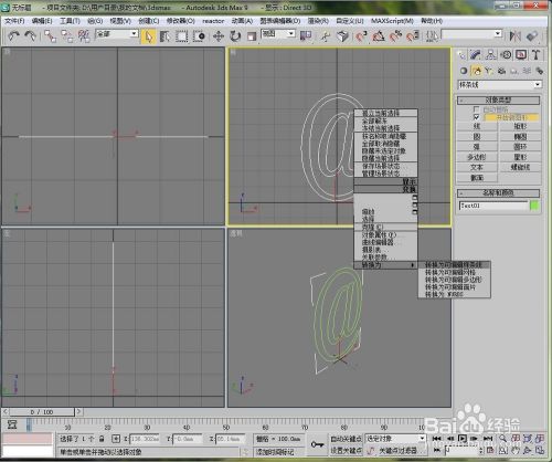右击将@转换成可编辑样条线,转换可编辑样条线的方法也有三种,具体可以参照转换成可编辑多边形。