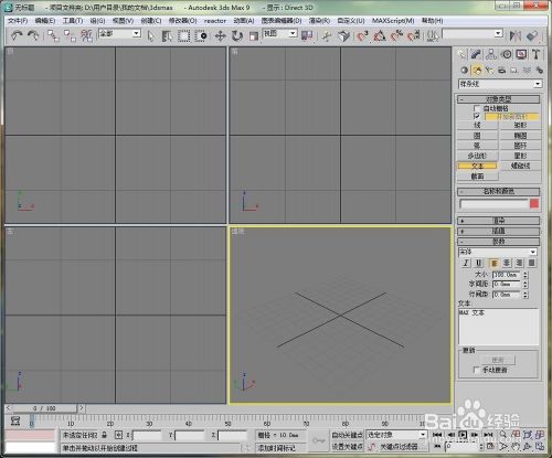在创建面板里选择样条线,在样条线下有文本。文本会经常使用,大家一定要会用