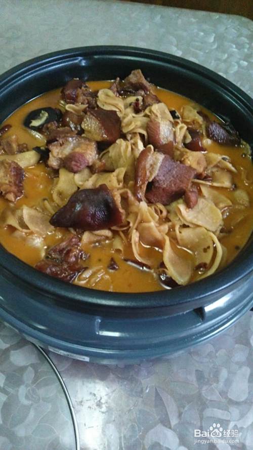 等萝卜干煮熟后,就可以将猪蹄盛在火锅中炖着吃,味道鲜极了。
