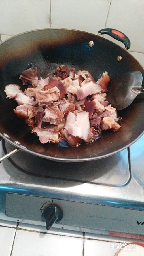 猪蹄煮烂后,打开锅盖,加入萝卜干;