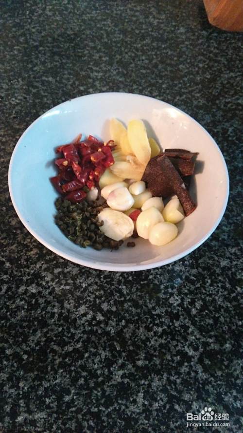 将干辣椒、姜、蒜、桂皮、花椒洗净切好备用;