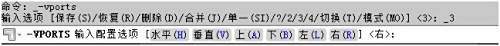 命令栏打开视口命令【vports】,选择默认【右】,直接按【Enter】键。