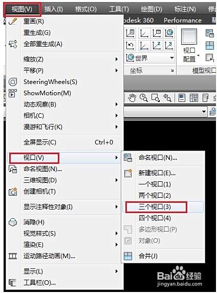 菜单栏:选择【视图】│【视口】│【三个视口】