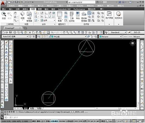 鼠标左键点击视口1,在C1圆的内部绘制一个三角形。你会发现在视口3里面的c1圆里面也绘制了个三角形。同样鼠标左键点击视口2,在C2圆的内部绘制一个正方形。你也会发现在视口3里面的c2圆里面也绘制了个正方形。这个操作就是当图形比较复杂,我们可以放大显示一个区域绘图,则其它视口的图形对象也同时更新。