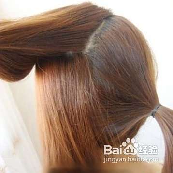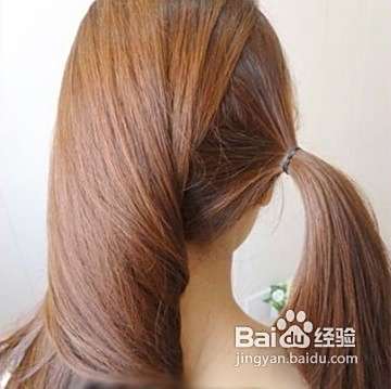 把头发分好之后,把右边部分的头发扎成马尾辫,具体的位置是在耳朵的中部附近,用橡皮筋把它扎紧。