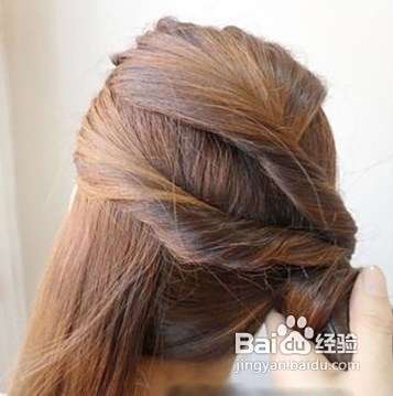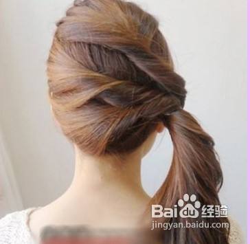 中间部分的发束也是采用相同的方式处理,顺时针绕卷之后缠绕在马尾上。
