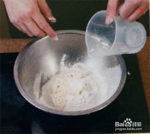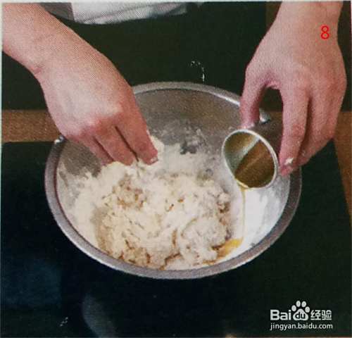 8:把橄榄油倒入面盆中,如下图所示