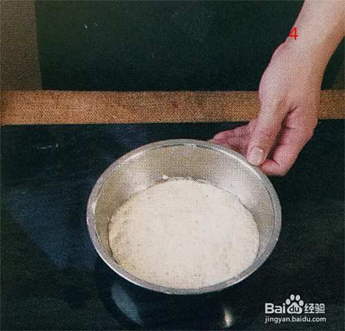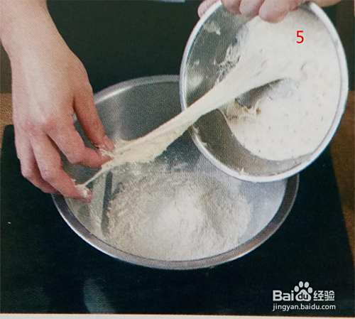 1:把液种法的面粉300克放入钢盆内,再加入300克的水。