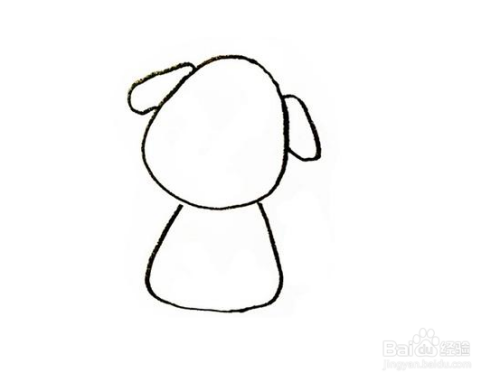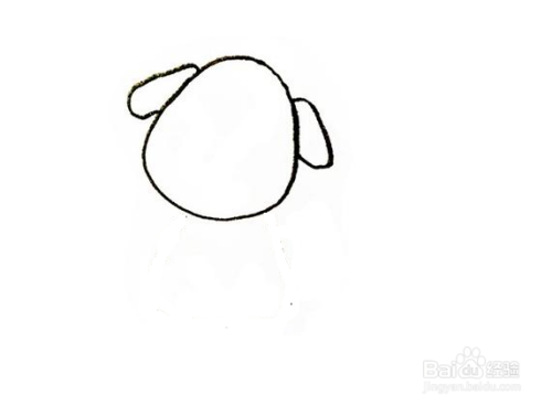 第1步,我们先把小狗的头部和耳朵画出来,它的头部是用一个大椭圆来表示,两个耳朵是用两个小细长条来表示,