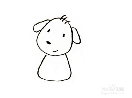 第3步,然后我们把小狗的眼睛鼻子嘴巴都画出来,这里都画的比较简单,都是用小点或者圆弧线来表示,那头发用的三条小斜线来表示,