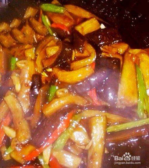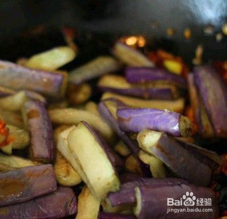 接着放入炸好的茄条,再放入调好的料汁大火翻炒均匀收汁即可