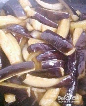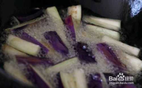 锅内放入适量食用油,烧制七成热,放入茄条炸制捞出备用