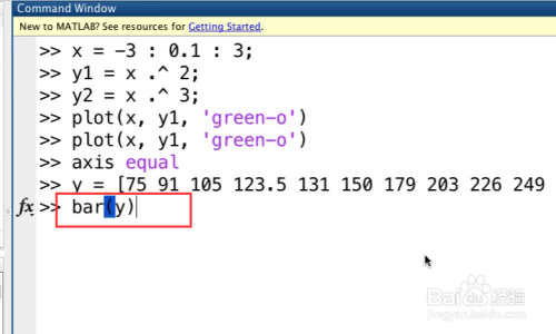 接下来调用matlab中的bar内置函数,传入y的值,如下图所示