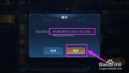 在弹出页面上,有告诉我们退出一个战队后有冷却时间,不能马上加入下一个战队。点击【确定】。