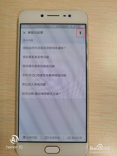再在【帮助与反馈】界面中点击右上角的扳手图标。