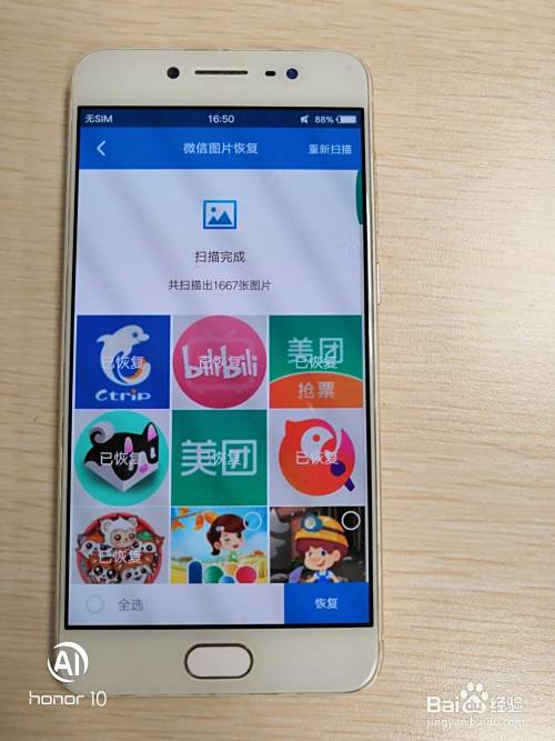 当APP扫描结束后,我们勾选需要恢复的微信图片,最后点击界面右下角的“恢复”按钮,这样就成功的恢复微信图片了。