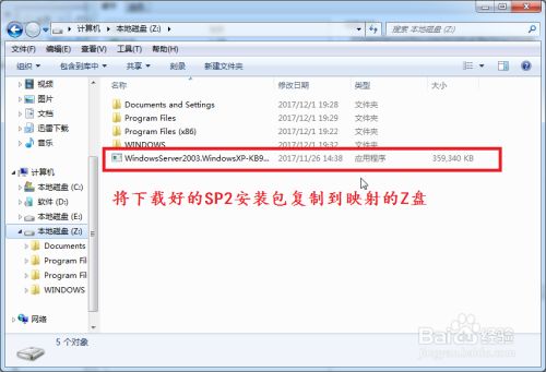将下载好了的WindowsXP SP2安装包复制到新打开的Z盘