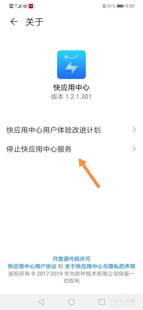 点击“停止快应用中心服务”即可彻底关闭华为快应用。