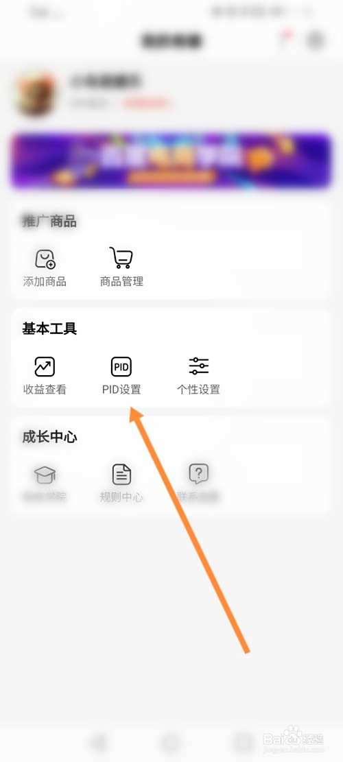 进入手机的百度浏览器,可在店铺管理中,通过点击PID设置,来绑定淘宝联盟PID。