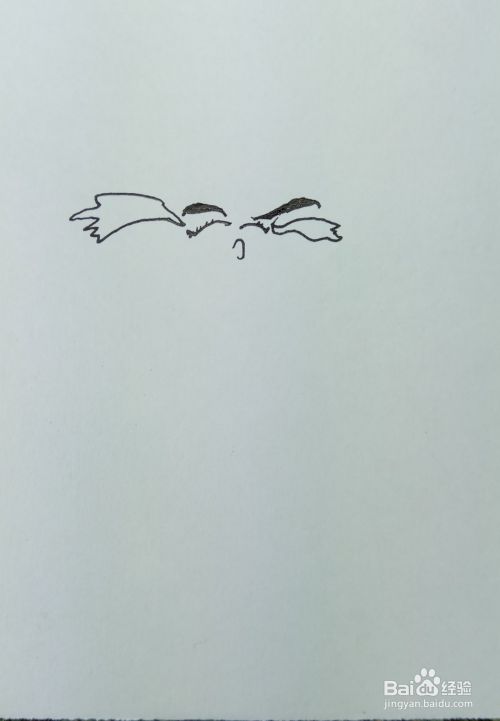 在白纸上用线条和曲线画出大头儿子的眼睛,眉毛和眼泪部分。