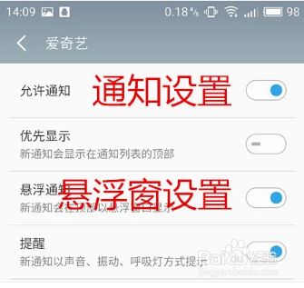 进入管理界面以后。根据图示,点击允许通知和悬浮窗通知,即可对应用进行通知和悬浮窗管理。