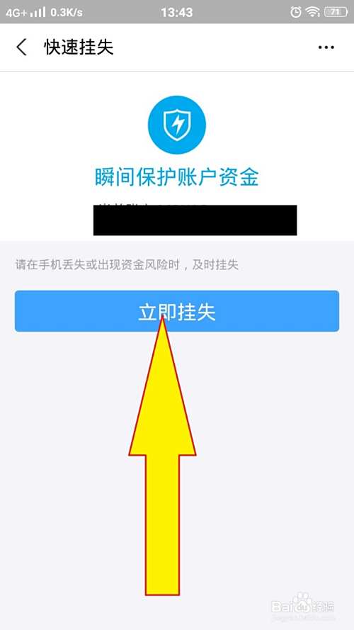 然后点击立即挂失,这样的话,别人就不能使用你的手机进行支付宝相关的业务办理。