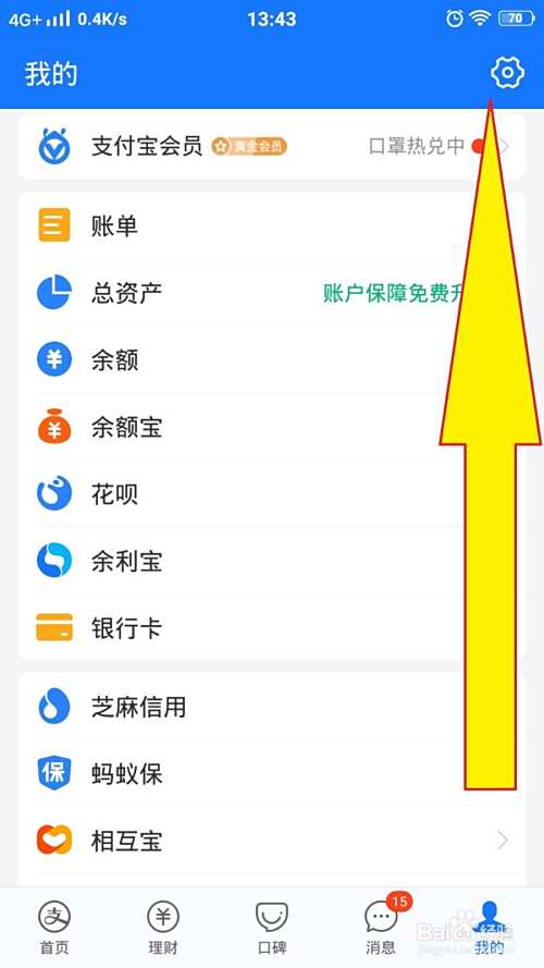 手机丢失过后,找到一部具有网络的手机,立刻登录自己的支付宝,进入我的页面,点击设置。