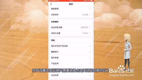 打开设置页面后就只需要选择点击关闭花呗就可以了。